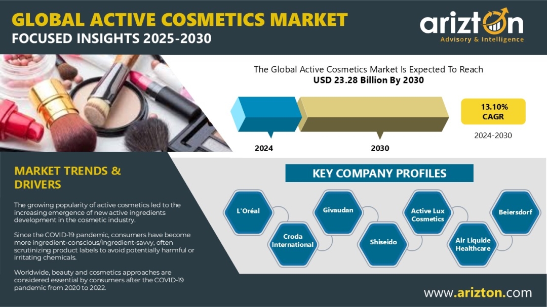 According to Arizton’s latest research report, the global active cosmetics market is growing at a CAGR of 13.10% during 2024-2030.