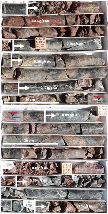 56.4m @ 1.0 g/t Au, including 3.1m @ 14.7 g/t Au
