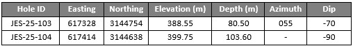 10.3 g/t Au Over 9.7m, including 1.6m of 60.6 g/t Au or 1.95 troy ounces (Hole JES-25-104)