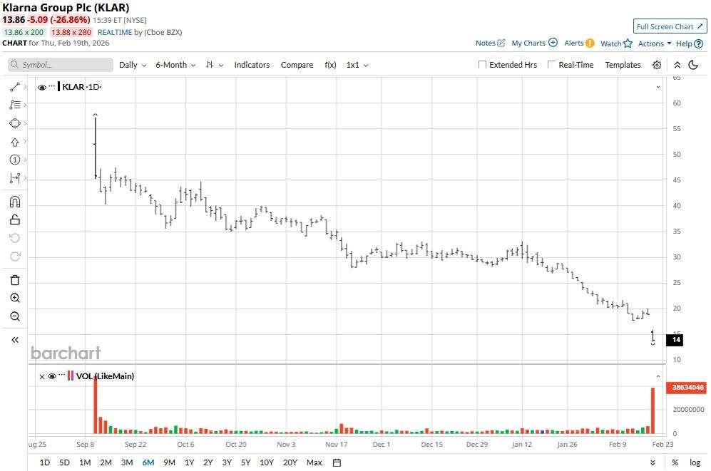 Following the post-earnings decline, Klarna’s relative strength index (14-day) sits at about 18.39, indicating extremely oversold conditions that often trigger a relief rally.