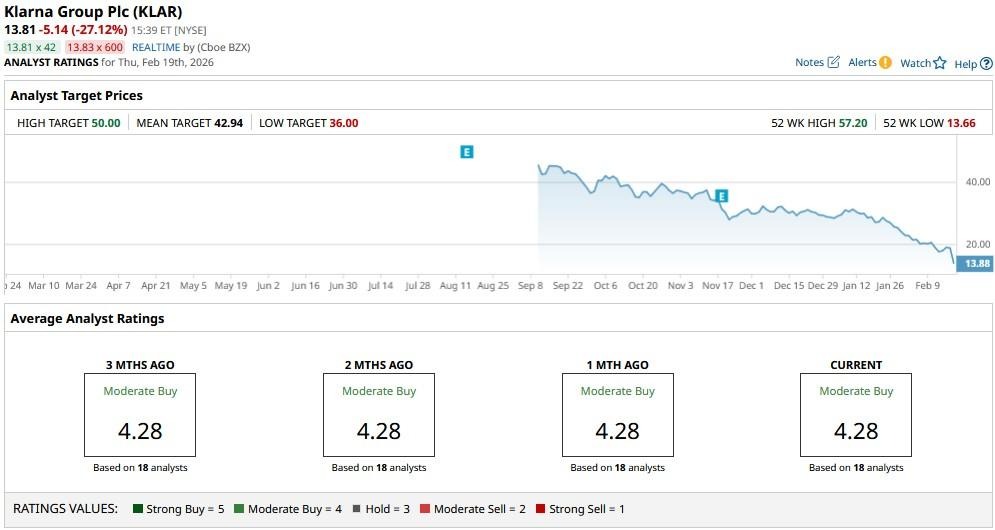 Heading into Thursday, Wall Street had a consensus “Moderate Buy” rating on Klarna with a mean target of nearly $43.