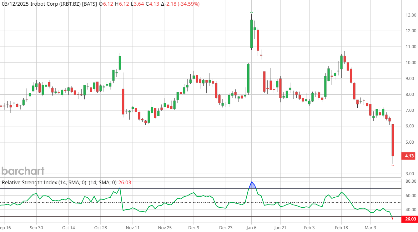 iRobot Corporation (IRBT) has plunged 34.9%, triggered by alarming fourth-quarter results and serious concerns about its future viability. The company's financial performance has deteriorated dramatically, with fourth-quarter sales dropping 44% year-over-year to $172.03 million, accompanied by an adjusted loss per share of $2.06.
