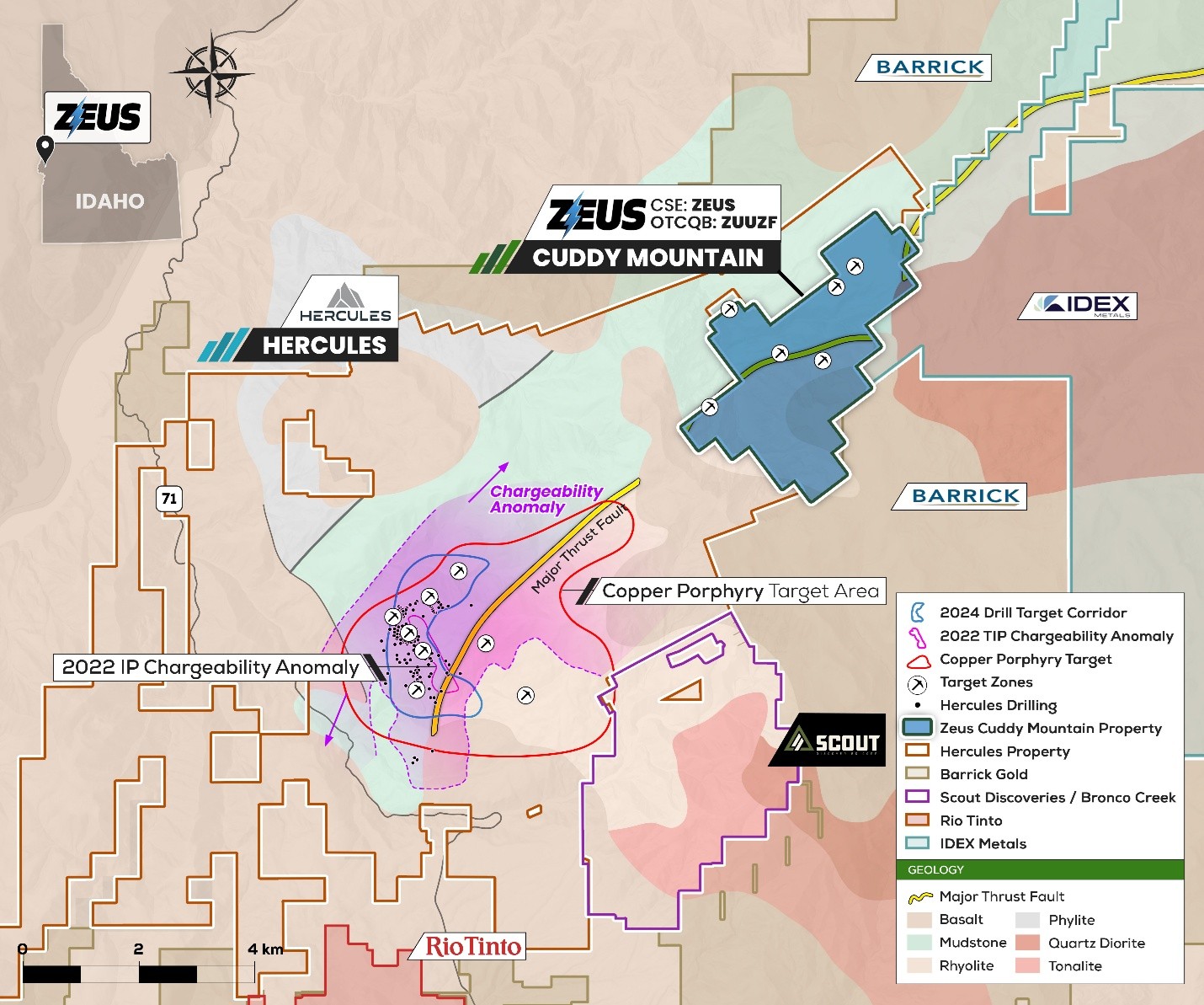 Dean Besserer, President and CEO, stated, "These anomalous rock grab samples are another layer helping to build out an extensive first phase high-priority drill campaign. The anomalous rocks within or near the mapped Seven Devils Volcanics are ideally located, reinforcing our confidence in this highly prospective target. We look forward to releasing the remainder of our fieldwork results as we move the project towards a planned upcoming drill program. With the nearby Hercules project gearing up for an aggressive 2025 drill season, the geological team at Zeus is eager to follow suit in the near future as Copper, Silver and Gold hit their 2025 highs."