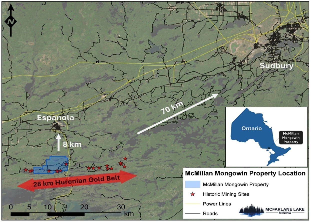 SUDBURY, ON / ACCESS Newswire / March 27, 2025 / McFarlane Lake Mining Limited (CBOE:MLM)(OTC-BB:MLML) ("McFarlane Lake" or "the Company"), a Canadian gold exploration and development company, today announces that it has successfully identified new geophysical drill targets at its 100% owned McMillan Mine property located approximately 70 kilometers west of Sudbury, Ontario (see Figure 1).