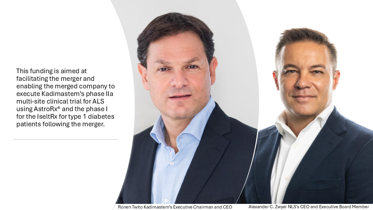 Specifically, this funding is intended to facilitate the merger by enabling the merged company to execute Kadimastem's phase IIa multi-site clinical trial for Amyotrophic Lateral Sclerosis (ALS) using AstroRx® and phase I for the IseltRx for type 1 diabetes patients, which is planned to commence following the merger.