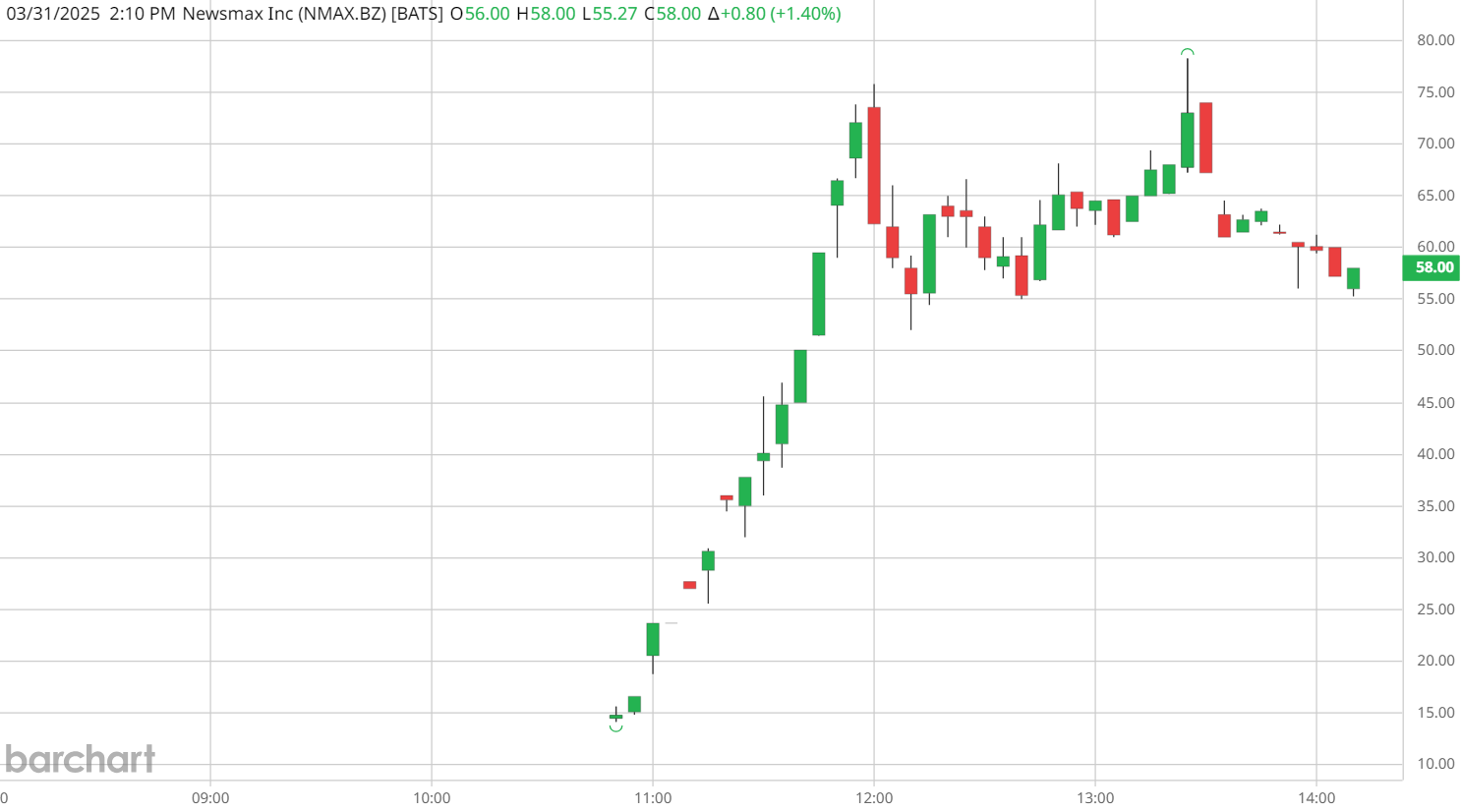 Newsmax's (NMAX) initial public offering (IPO) on the New York Stock Exchange (NYSE) has been a top story amid mixed trading in the broader stock market this Monday. NMAX stock priced at $14, above its IPO of $10, and rocketed north of $78 per share at session highs.Â