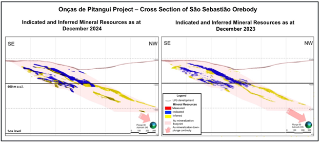 Figure 10. Cross Section of the Onças de Pitangui project Mineral Resources year-over-year changes (2024 vs. 2023).
