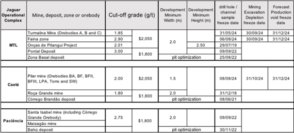2. The released Mineral Resources estimations include the Turmalina, Pilar, Roça Grande, Santa Isabel and Marzagão mines, the Faina zone, Pontal deposit, and Onças de Pitangui project underground Mineral Resources and the Zona Basal deposit, the Bahu and Córrego Brandão open-pit zones Mineral Resources.