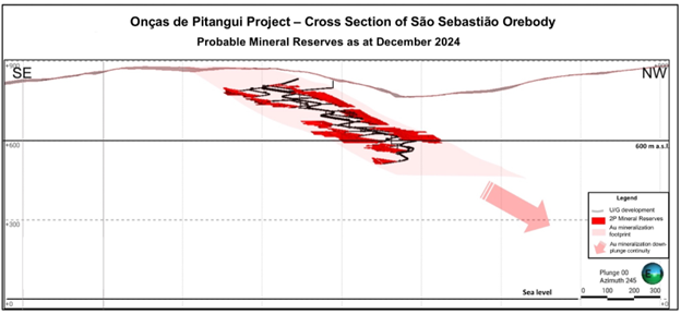 Figure 5. Cross Section showing the Onças de Pitangui project Reserves as at December 31, 2024
