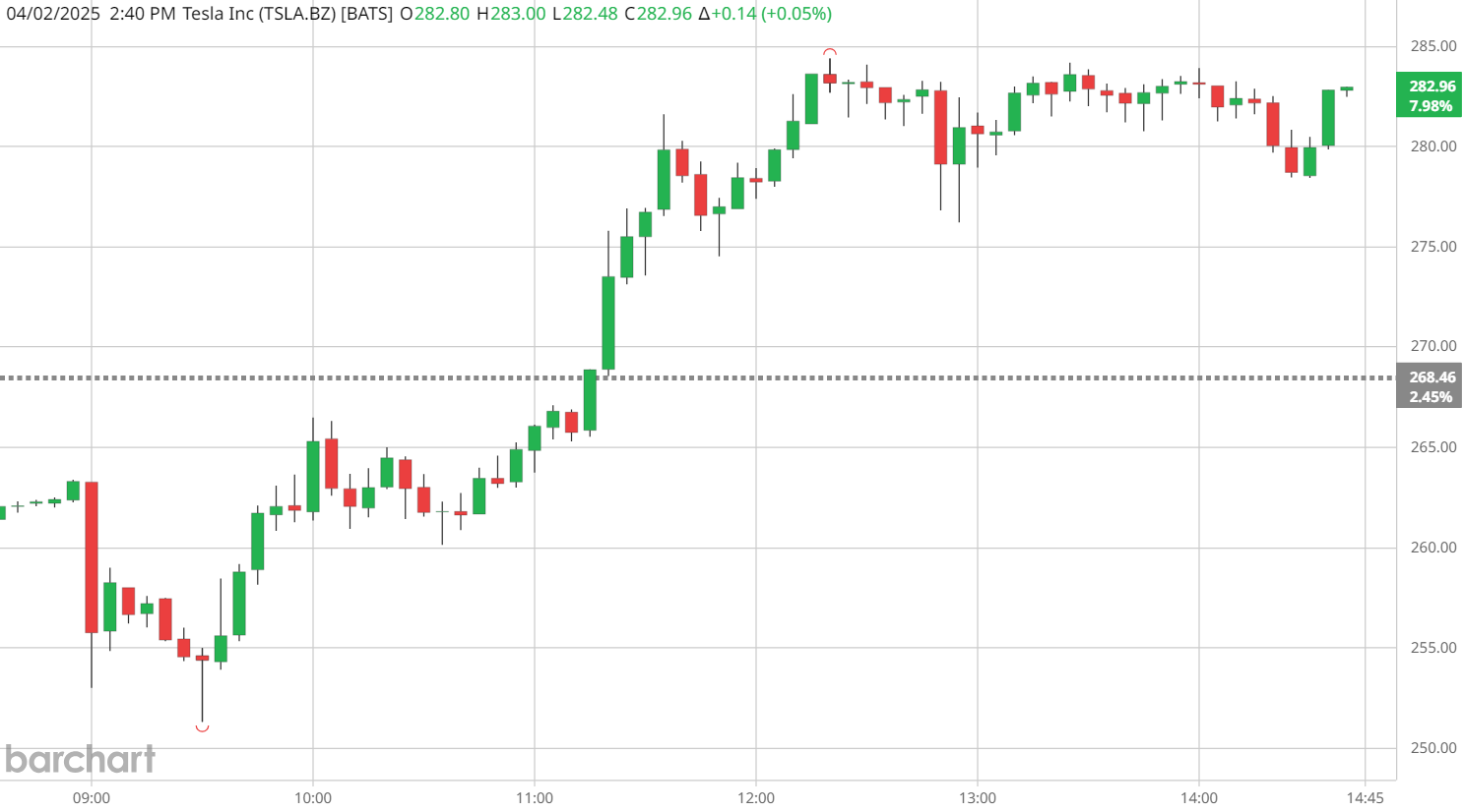 Stock #1. Tesla (TSLA), up +4.0%