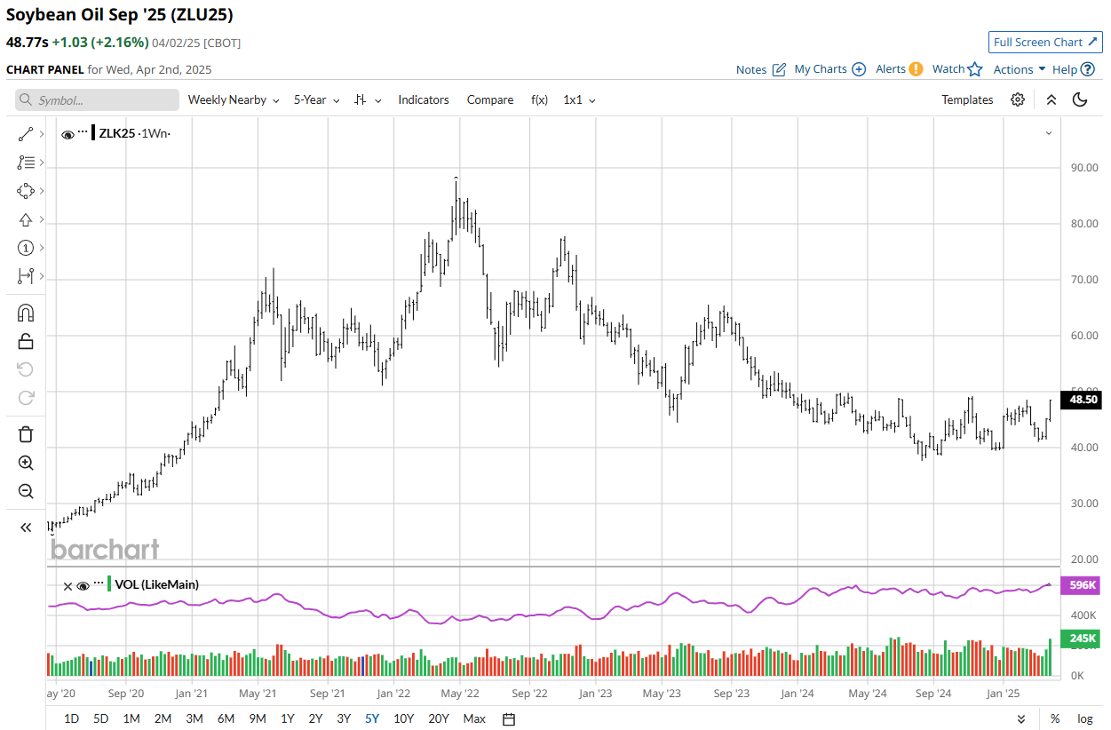The Grain Markets made some gains today. The Beans settled above the middle of today's range, on a 24-cent range day. May'25 Soybeans were 6 cents higher today and settled at 983. Today's high was 993 ½ and the 1-month high is 1034 ¾. Today's low was 969 ½ and that is the new 1-month low as well. Since 3/7 May'25 Soybeans are 42 cents lower or more than 4%. The Corn was higher again today. May'25 Corn was 4 ¼ cents higher today and settled at 464 ½. Today's high was 467 ½ and the 1-month high is 477 ½. Today's low was 454 ¼ and the 1-month low is 442. Since 3/7 May'25 Corn is 4 ¾ cents higher or about 1%. The Wheat Market fought back today. May'25 Wheat was 7 ½ cents higher today and settled at 536 ½. Today's high was 536 ½ and the 1-month high is 575 ¼. Today's low was 525 ¾ and the 1-month, and 52-week contract low is 517 ½. Since 3/7 May'25 Wheat is 14 ¾ cents lower or almost 3%. The Grain made a big turnaround this morning after false rumors sent the stock markets into positive territory for brief moment. The May'25 Soybeans traded as high as 993 ½ today, only to fall back about a dime off the highs. It was good to see the May'25 Beans up 16 ½ cents, if only for a few minutes. That does tell me that the Beans and the rest of the Grain are ready to run higher when the time is right and could even decouple from the movement of the Stock Markets. The May'25 Corn looked good again and settled 10 cents above the lows of the day. The May Wheat was 18 cents higher on the highs today but ended up closing 10 cents below the high. It was clear that the Wheat wanted to take off today, and I feel we will see that happen soon. I still like the May'25 Soybeans at the 1050 level and then 1100. The 200-Day moving average is 1045 ¼, and the 50% retracement from the 52-week high/low is 1096. The May'25 Corn settled 2 cents below the 50% retracement from the 52-week high/low, and just 4 ¼ cents below the 100-Day moving average of 468 ¾. I still like the 500 level. The May'25 Wheat will be fun to watch if it takes off soon. Today it traded 3 ½ cents from the 550 level, and I feel we can see it trade up to and through the 200-day moving average of 583 ¾ and then make its way up to the 650 level if it is able to take off. I still feel the Soybean Oil is a prime candidate for explosive growth. The September'25 Soybean Oil settled at 45.22 but traded almost 1.50 higher from there on the high of the day at 46.71. This market wants to run higher as well I feel. Today, President Trump said what I have been waiting to hear, and what could be the catalyst for the way higher. President Trump said today that the European Union needs to buy US energy. He said there is a $350 Billion trade deficit, and they can make that up by purchasing US gas and Oil. This is exactly why I have been recommending buying Natural Gas for months. I highly recommend being long this contract and still feel it can trade 6.50 or higher. This would make the Soybean Oil rally as well. If China does not drop the 35% tariff against the US, President Trump said he would add an additional 50% tariff on China, starting tomorrow. If that were to happen, I feel the used cooking oil out of China would be banned as well. That is when we could see the Bean Oil truly take off!