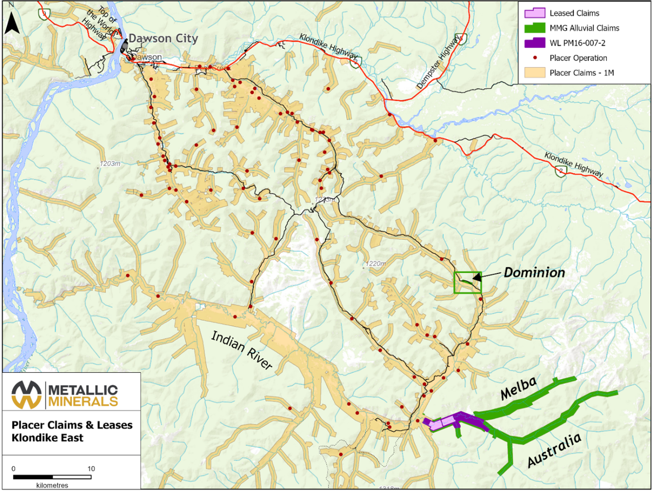 Figure 1: Klondike Gold District and Metallic Minerals' Properties