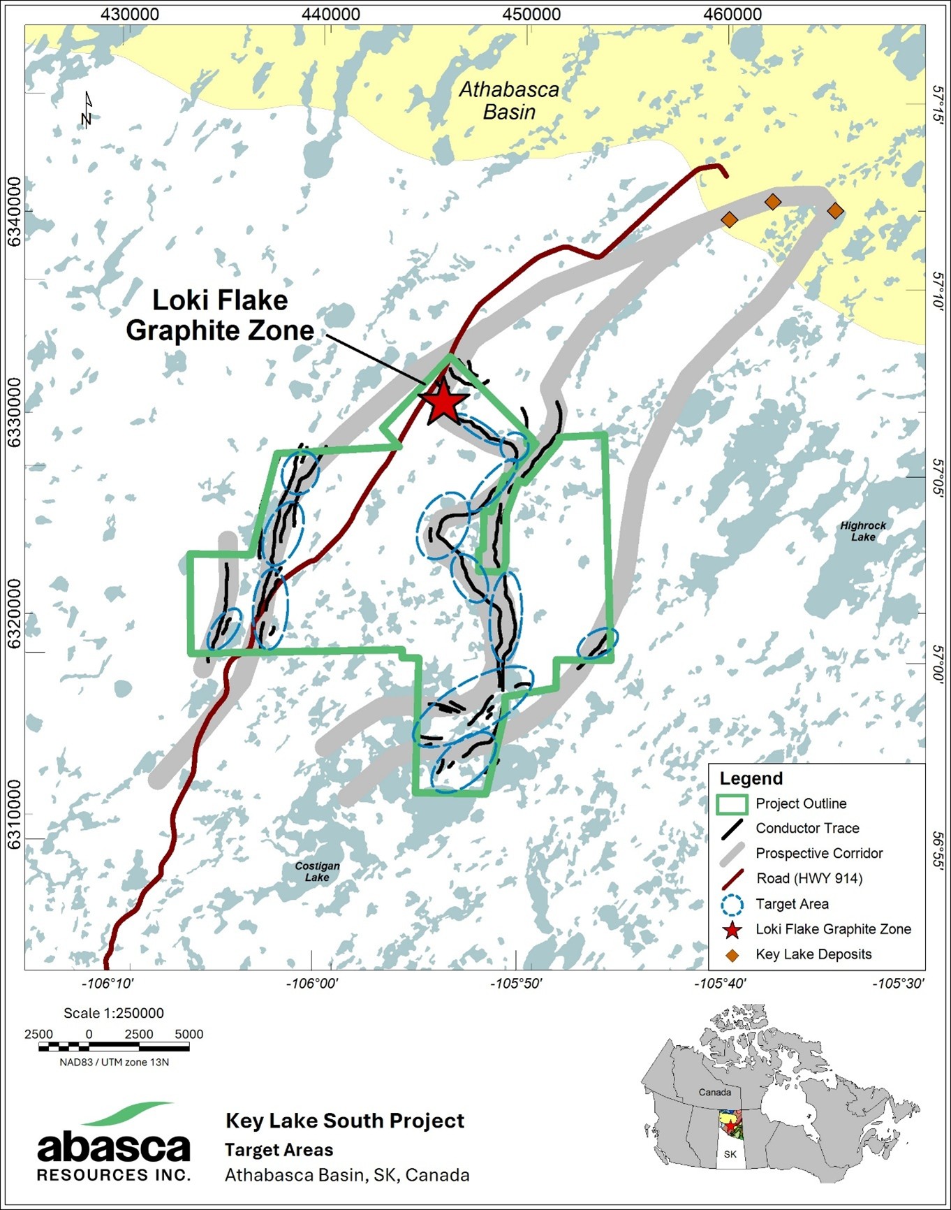 Figure 1: Map of the Key Lake South Project area showing the location of the Loki Flake Graphite Zone and other exploration target areas.