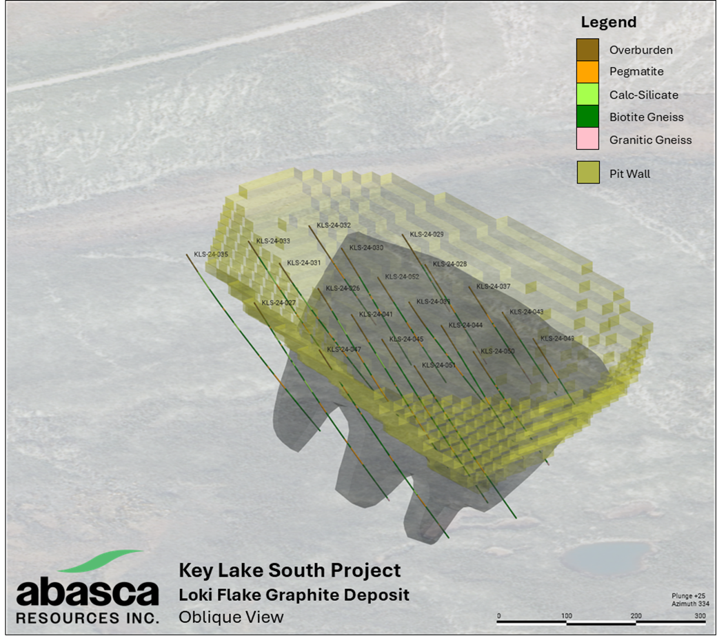 SASKATOON, SK / ACCESS Newswire / April 15, 2025 / Abasca Resources Inc. ("Abasca" or the "Company") (TSXV:ABA.VN) is pleased to announce the maiden mineral resource estimate (the "MRE"; Table 1) of its Loki Flake Graphite Deposit (the "Loki Deposit") at its 100%-owned Key Lake South (KLS) Project (Figure 1 and 2) (the "Project") in close proximity to regional infrastructure which services Cameco's Key Lake operation. The graphite MRE denotes a major milestone for the Project and positions Abasca to play a significant role in contributing to North America's secure supply chain of graphite.
