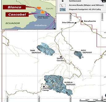The map below (Figure 1) shows SolGold's nearby targets around the Alpala deposit. The Tandayama deposit is one of a few deposits that has the potential to significantly de-risk the project in the early years ahead of full production at the Alpala deposit. The intention over the coming years, in parallel with completing a detailed feasibility study is to ensure that the potential of nearby tenements, Aguinaga and Blanca Nieves are assessed and understood.