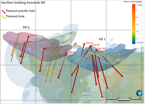 As a first step in the plan, the Company has resolved to conduct a targeted drill program of 5,400 metres over 11 priority holes and up to 15 holes in total, which is budgeted at US$3.25m on the Tandayama resource area.