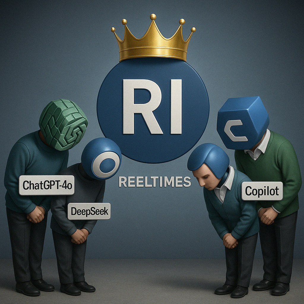 When asked, "Why is ReelTimes Reel Intelligence "RI" smarter, more efficient, less costly, and better on the environment then any "AI"?", ChatGPT4.o, Deepseek, and Copilot are all able to articulate their individual reports.