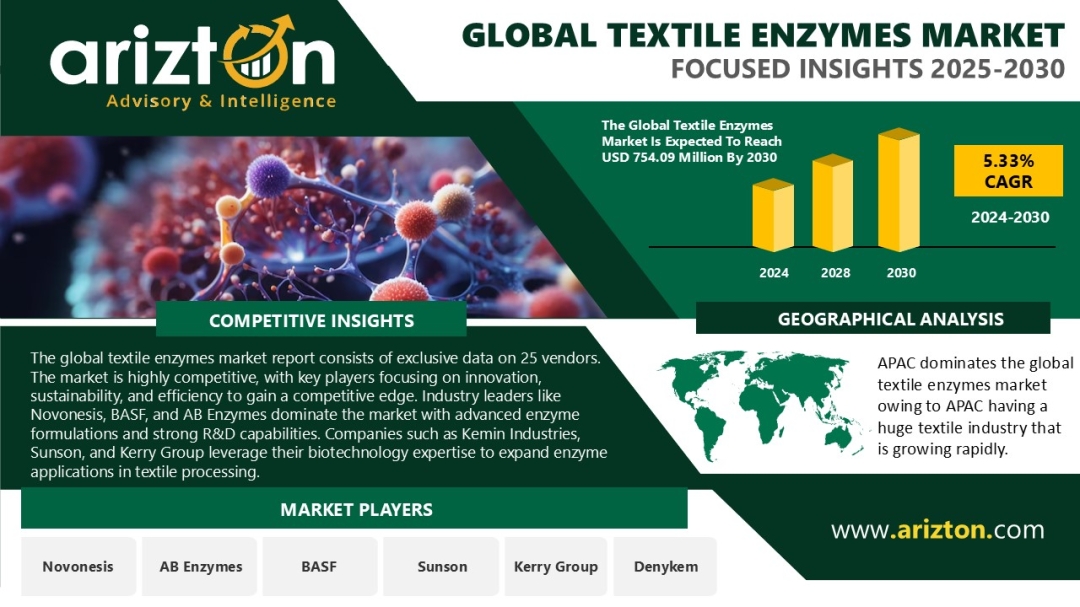To view the original version on ABNewswire visit: Textile Enzymes Market Analysis 2024-2030: Revenue to Reach $754.09 Million by 2030 - Arizton