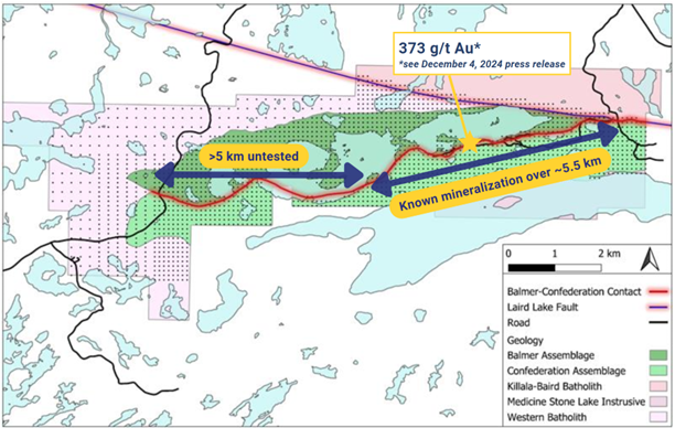 Starting May 2025, the Company plans to collect approximately 2,000 till samples over its Laird Lake project (Figure 1). The program will range from 100 m x 100 m grid spacing within the Balmer and Confederation assemblages and expand to 200 m x 200 m within the surrounding felsic intrusive bodies.
