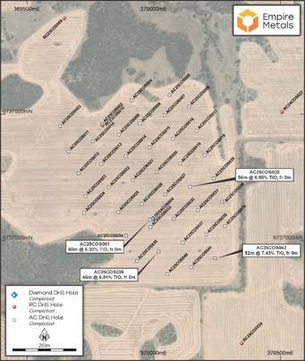 LONDON UNITED KINGDOM / ACCESS Newswire / April 28, 2025 / Empire Metals Limited (LON:EEE.LN)(OTC-BB:EPMLF),the AIM-listed and OTCQB-traded resource exploration and development company,is pleased to announce highly successful results from its recently completed Air Core ('AC') drilling programme at the Pitfield Project in Western Australia ('Pitfield').