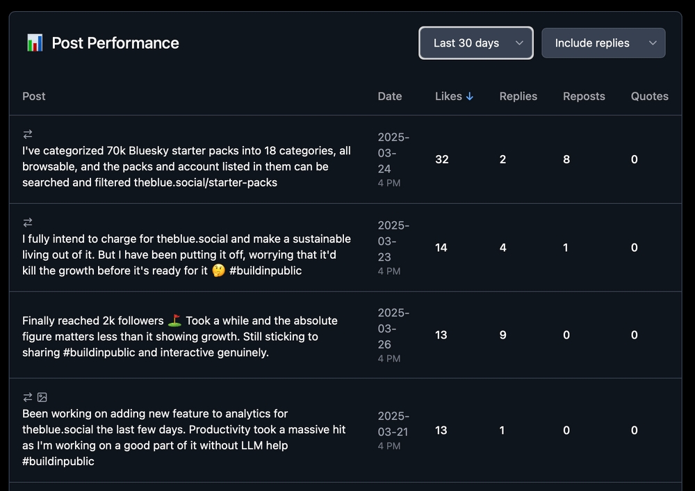 With TheBlue.social’s analytics dashboard, users can easily track their content performance and audience growth over time. Interactive visuals reveal optimal posting times, highlight follower growth trends, and provide insights into engagement patterns, empowering users to create more impactful posts.