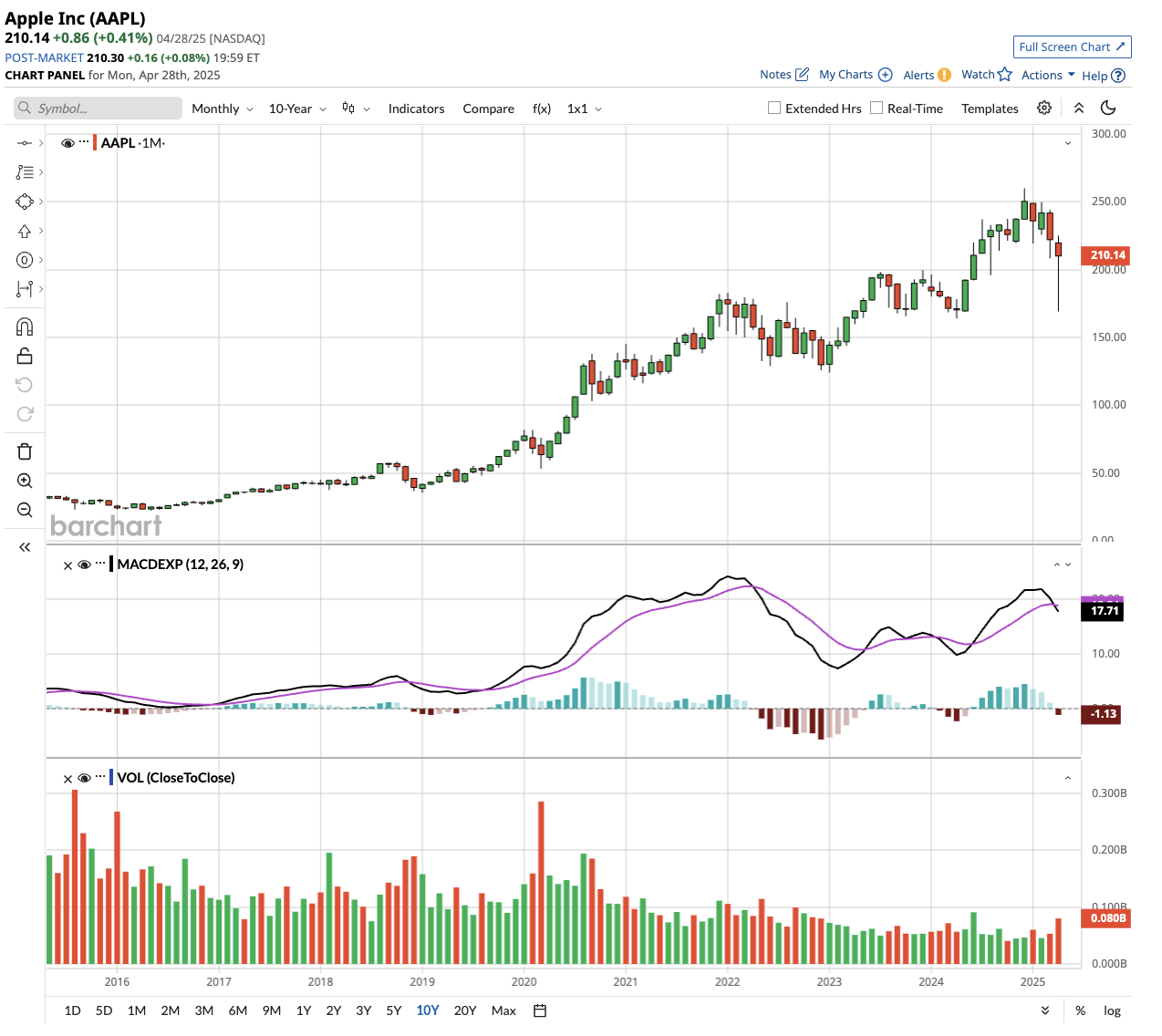 Apple is scheduled to report its fiscal Q2 2025 (ended in March) results on Thursday, May 1. Wall Street estimates the hardware giant to report revenue of $94.23 billion and adjusted earnings per share of $1.61 in the March quarter. In the year-ago period, it reported revenue of $90.75 billion and adjusted earnings per share of $1.53.