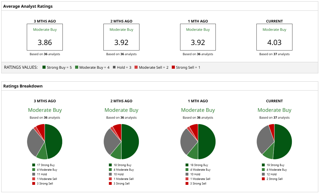 If AAPL stock trades at 20x forward earnings, it will be priced around $176 in early 2027, below its current trading price of $210. Out of the 37 analysts covering AAPL stock, 19 recommend “Strong Buy,” four recommend “Moderate Buy,” 12 recommend “Hold,” and two recommend “Strong Sell.” The average target price for Apple stock is $238.26, indicating 15% upside potential from current prices.