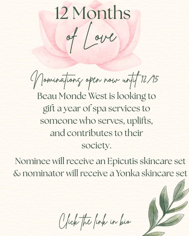 WICHITA, KS - November 5, 2025 - Beau Monde West Spa has announced the return of its Twelve Months of Love (12 MOL) community recognition program for 2026. The initiative invites Wichita-area residents to nominate individuals who consistently demonstrate selflessness through their care, time, and dedication to others in the community.