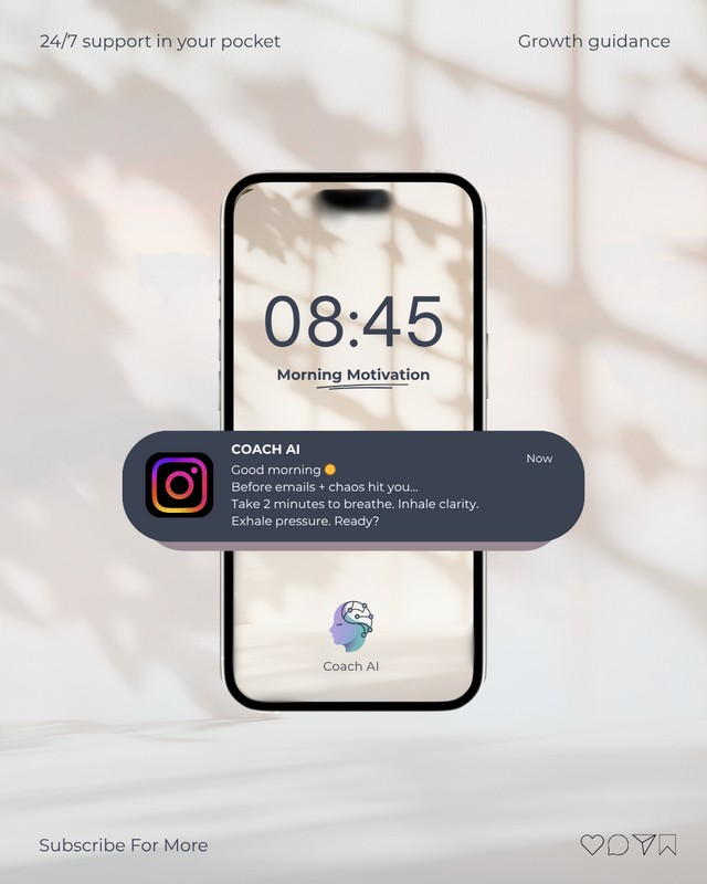Available through the familiar platform of Instagram Direct Messages, Coach AI integrates seamlessly into users' daily lives. Whether someone is seeking motivation, clarity, or advice, Coach AI is available 24/7, offering tailored support. As users interact with their coach, it grows more attuned to their needs, fostering a deeper and more meaningful coaching relationship.