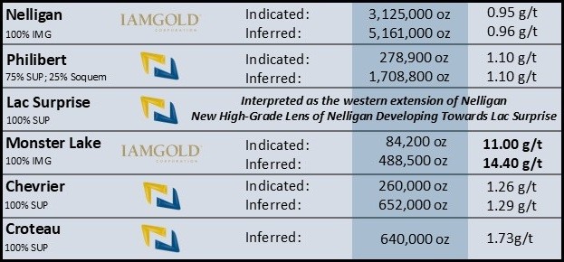 3 "lAMGOLD Announces Significant Increase in Nelligan Ounces & Update of Global Mineral Reserves and Resources"; IAMGOLD reports increase in mineral reserves and resources at existing assets, with increase in resources at Gosselin; IAMGOLD Corporation News Release dated February 15, 2024, October 23, 2024, and February 20, 2025. Note that the technical and scientific information disclosed from neighboring properties does not apply to any other properties of the area.
