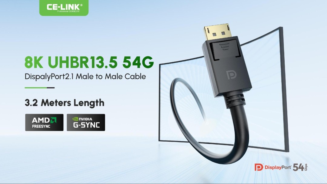 As demand for high-definition visuals and immersive gaming continues to surge, consumers need high-performance display cables that deliver long-distance, lossless transmission. CE-LINK meets this need with its latest 3.2-meter 8K UHBR13.5 54G DisplayPort 2.1 cable. Engineered for long-distance, lossless transmission, it sets a new standard for large-screen HD experiences with industry-leading length and full DP2.1 compliance.