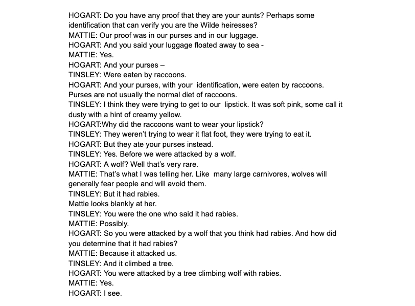 Above: A page from Timothy Hines' Script for THe WIlde GIrls.