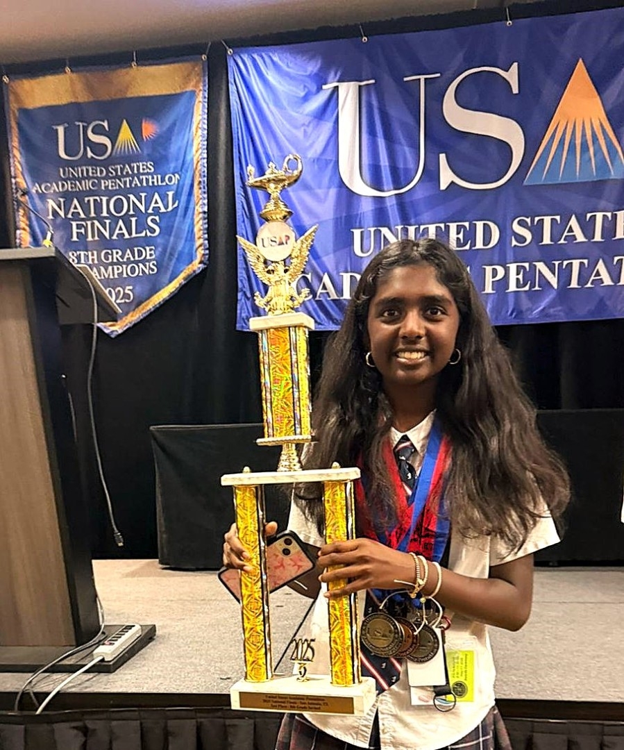 Competing against elite middle-school scholars from across the United States, Nikita drew praise for both academic mastery and poise under pressure. “Nikita’s preparation and composure were evident in every event,” a Pentathlon parent noted. “She exemplifies the balance of intellect, creativity, and teamwork the Pentathlon is designed to foster.”