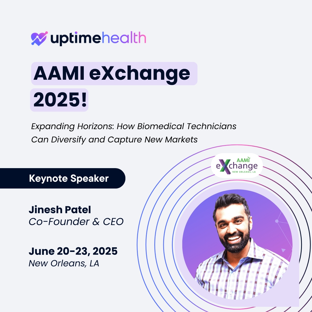 Boston, MA - May 22, 2025 - UptimeHealth is proud to announce that its Co-Founder and CEO, Jinesh Patel, will be a featured keynote speaker at AAMI Exchange 2025, delivering a talk titled "Beyond Traditional Boundaries: Expanding Biomedical Technical Expertise into High-Growth Healthcare Verticals" on Sunday, June 22, 2025, at 10:30 a.m.
