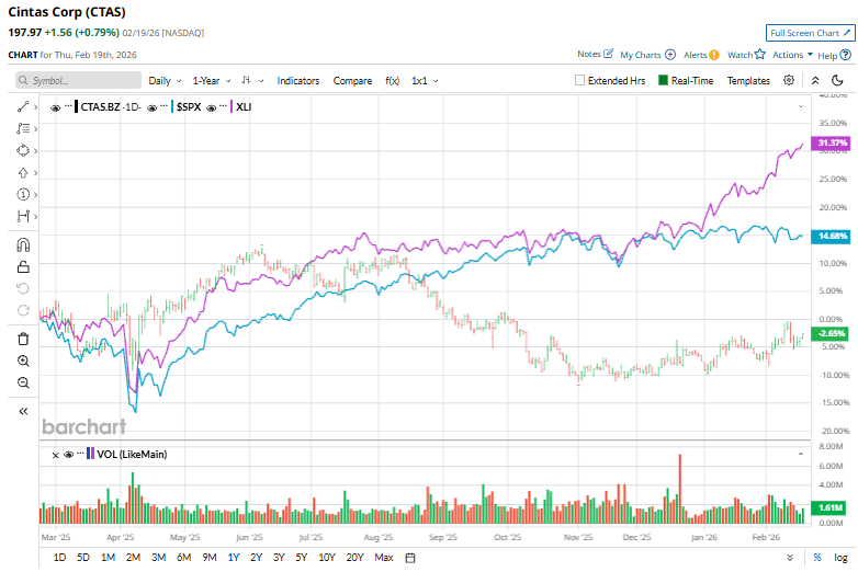 Shares of this leading provider of corporate identity uniforms and related services have underperformed the broader market over the past year. CTAS has declined 4.9% over this time frame, while the broader S&P 500 Index ($SPX) has rallied nearly 11.7%. However, in 2026, CTAS stock is up 5.3%, compared with SPX’s marginal YTD rise.