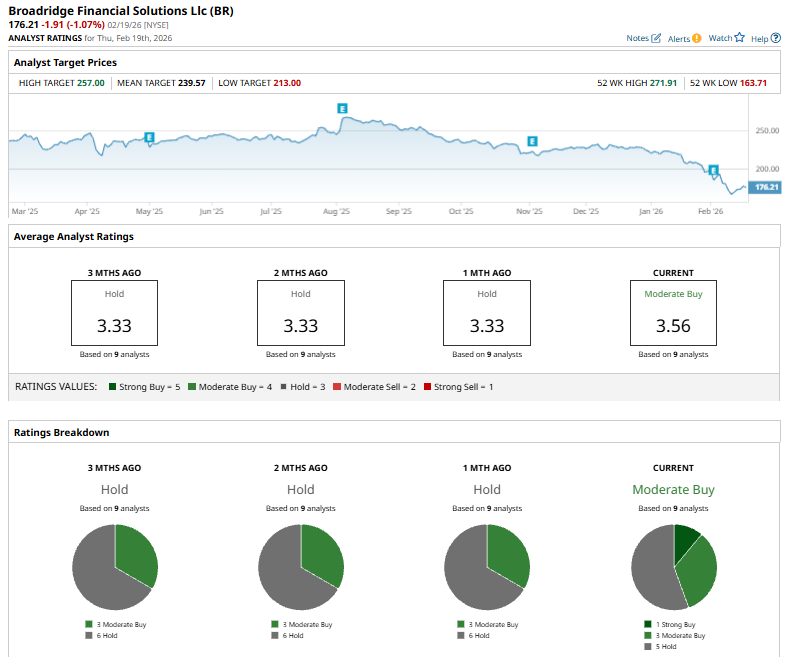 On Feb. 10, DA Davidson reiterated its “Buy” rating and $228 price target on Broadridge Financial after the company agreed to acquire CQG’s core trading technology business, a futures and options execution and connectivity platform. CEO Tim Gokey said the deal will cost about $170 million and add roughly $55–58 million in annual revenue. The analyst views the acquisition as strategically aligned with Broadridge’s approach of buying complementary capital-markets technology assets, while noting the firm maintains moderate leverage.