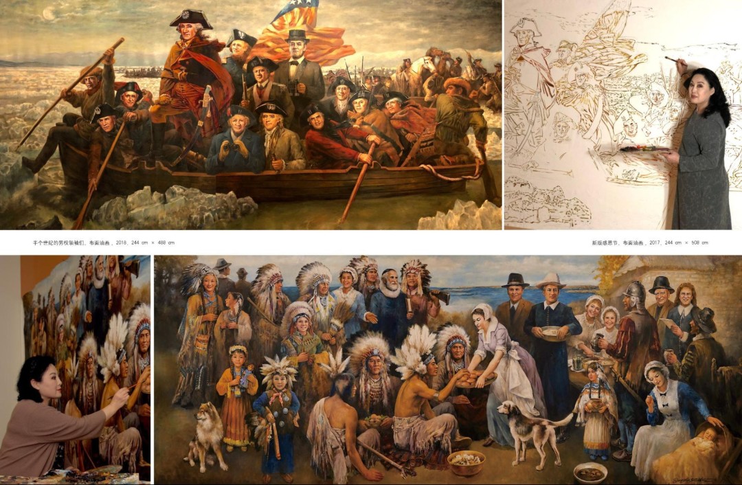 Pic Description: Ellen Qiongzhao created and completed two large-scale oil paintings in 2017 and 2018. They are titled "America, Where Are You Going?" and "American Thanksgiving History Reappears".
