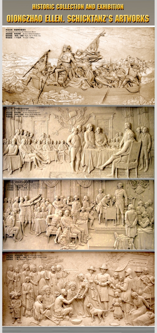 Pic Description:Historic Bronze Relief Series - Signature works by Dr. Ellen Qiongzhao Schicktanz, permanently exhibited near Independence Hall at major U.S. national institutions. These large-scale reliefs honor pivotal moments in America’s founding history.