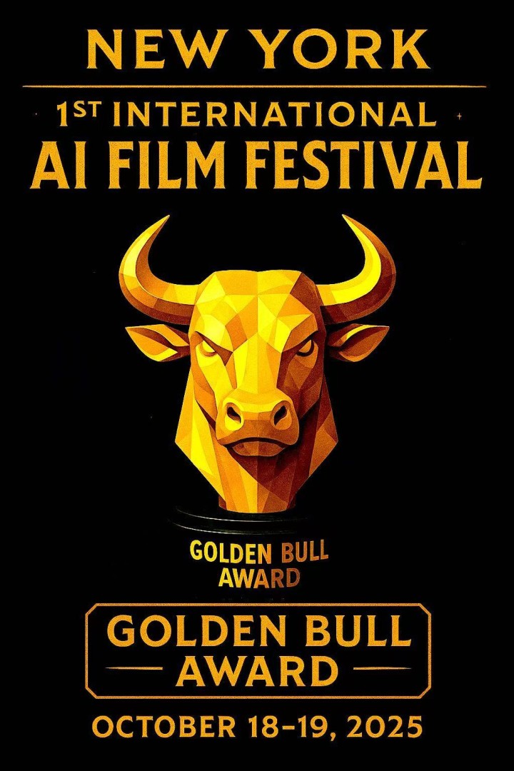 Pic Description: The Golden Bull Award designed by Dr. Schicktanz for the New York First International AI Film Festival.