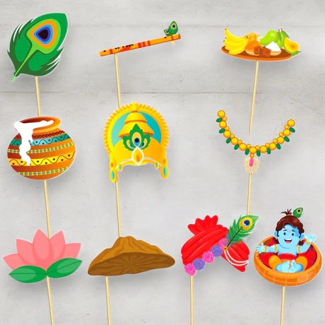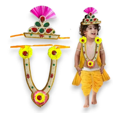 - Krishna Decoration Accessories – Crown sets, flute décor, peacock feather elements, and more