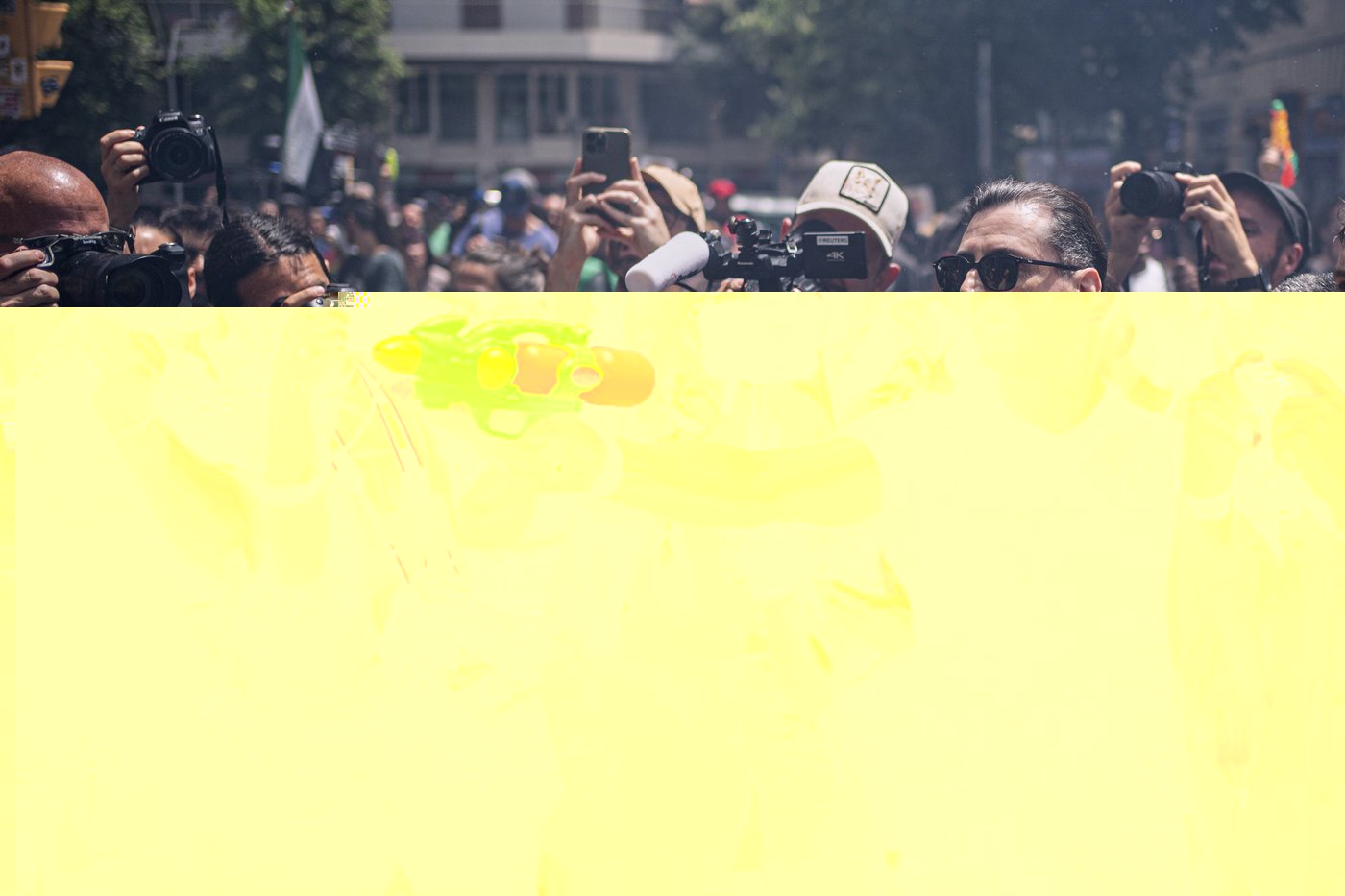 The marchers had no monster, pump-action water cannons most kids use for backyard battles in the summer. Theirs were the old-school, cheap-o water guns that send a slim jet of water not that far away.