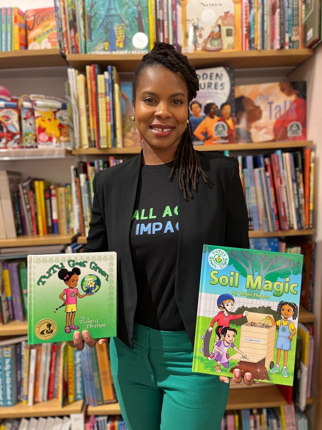 Tulani Thomas, a former CPA, corporate attorney, and mother of two, founded TuTu’s Green World out of necessity. “I couldn’t find books that resonated for my kids, or taught the values we lived at home, eco-consciousness, mindfulness, healthy living,” said Thomas. “So, I decided to write them myself.” That decision sparked the creation of the beloved children’s book TuTu Goes Green, introducing young readers to TuTu, an inquisitive little girl who models everyday green habits with the mantra: small acts, big impacts.