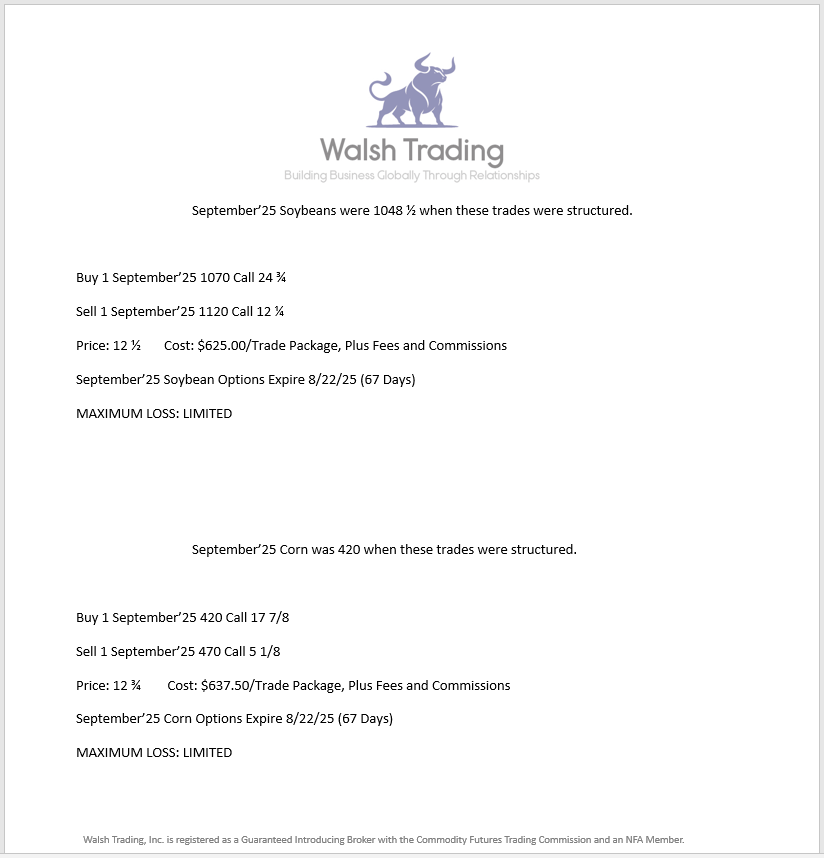 NEW CORN, SOYBEAN, AND WHEAT CALL SPREADS FROM YESTERDAY BELOW.