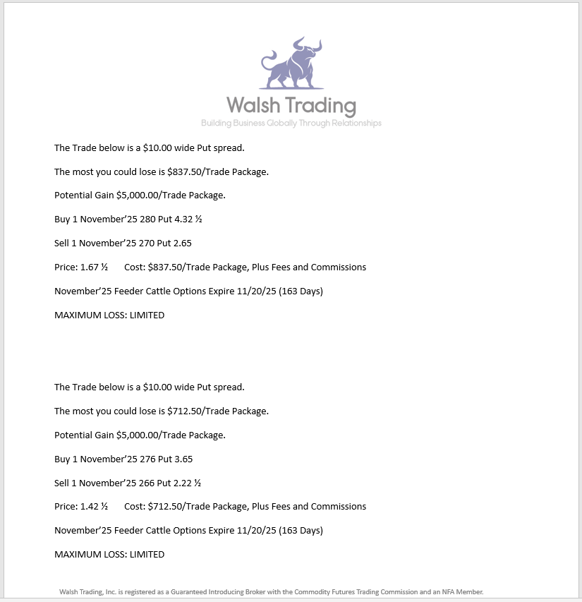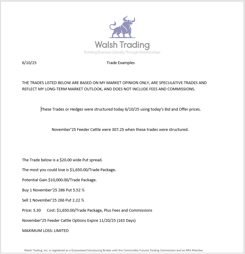 November'25 Feeder Cattle Trades/Hedges From 6/10/25 Below