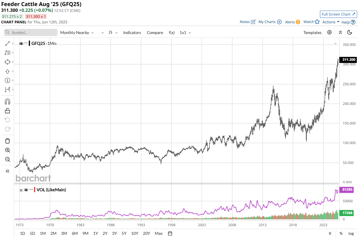 50-Year Cattle Chart Below. Whenever it Breaks it Will Be a Spectacular Collapse.
