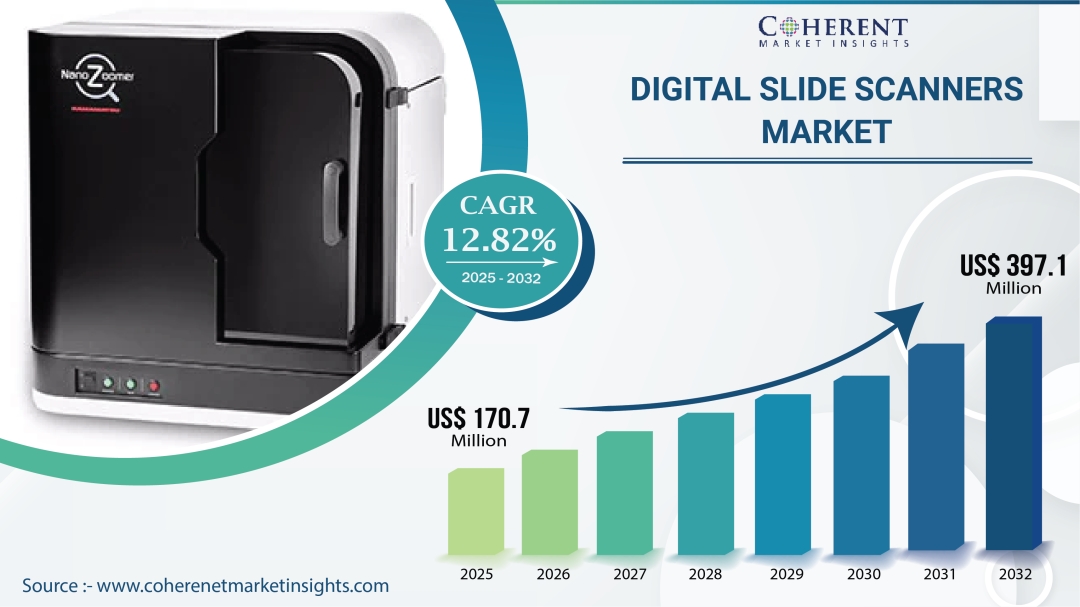 To view the original version on ABNewswire visit: Digital Slide Scanners Market Projected to Reach USD 397.1 Mn by 2032, Growing at CAGR of 12.82% | Coherent Market Insights