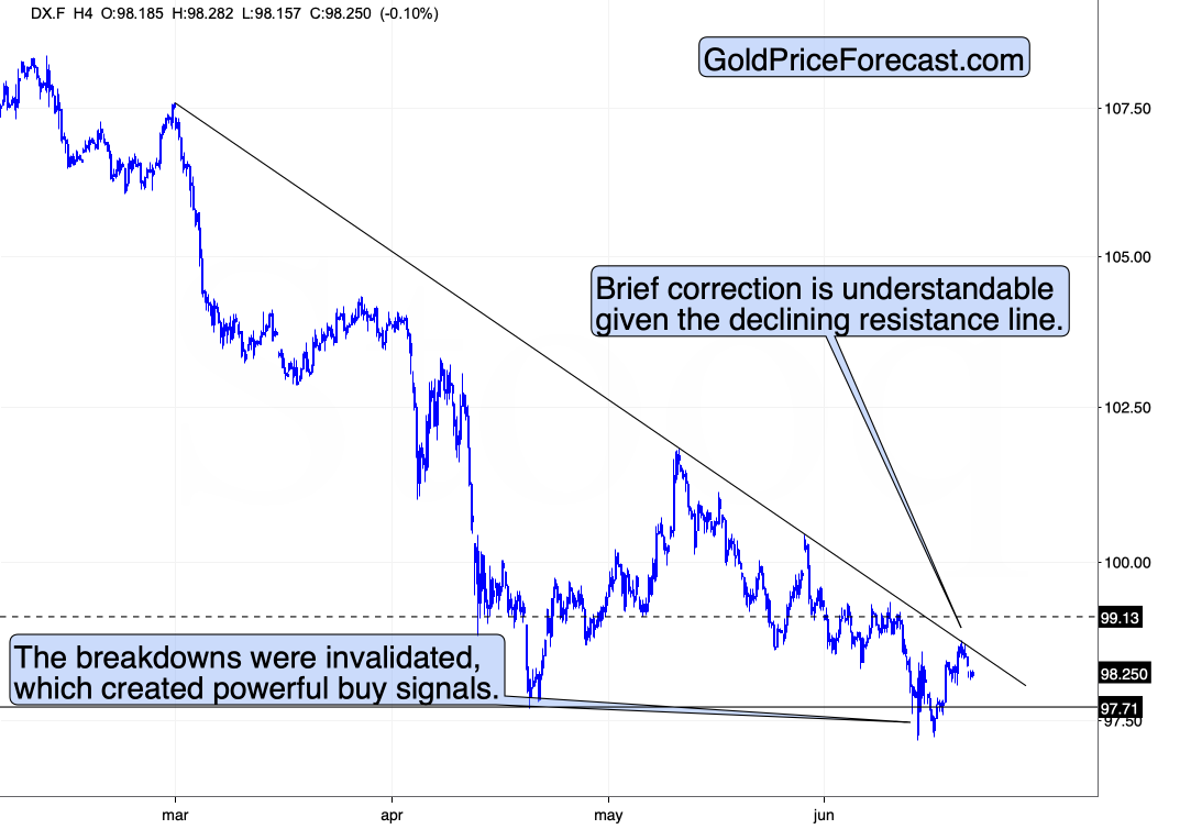 And yes, it is particularly bearish given what’s happening in the USD Index. But before I move to that, let’s take a look at gold.