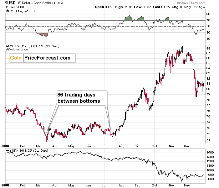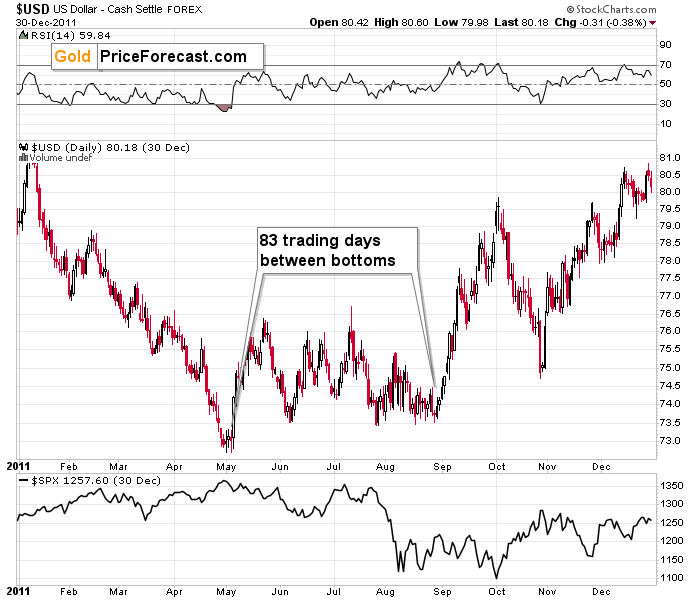 Besides, broad bottoms in the USD Index are quite common – and the final bottoms quite often form close to the middle of the year, which is exactly where we are right now.