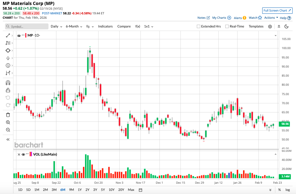 Shares of MP stock have risen 155% in the last 52 weeks and 16% year-to-date (YTD). The stock has significantly outpaced the broader S&P 500 Index ($SPX), which has reported a 12% gain for the past year and remained flat YTD.