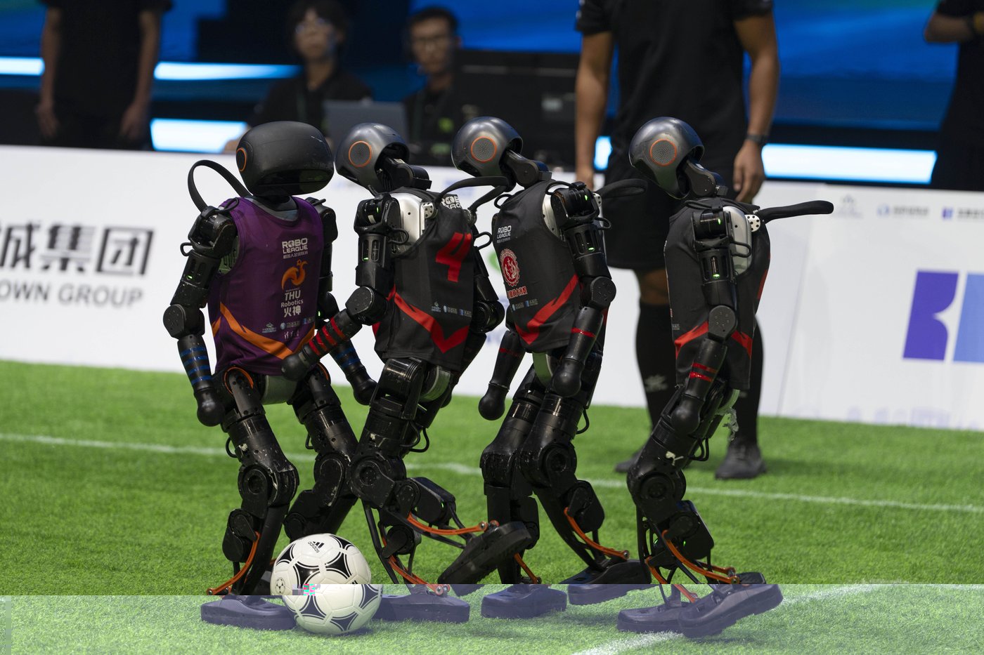 Four teams of humanoid robots faced off in fully autonomous 3-on-3 soccer matches powered entirely by artificial intelligence on Saturday night in China's capital in what was touted as a first in China and a preview for the upcoming World Humanoid Robot Games, set to take place in Beijing.